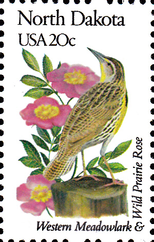 In der Serie "Vögel und Blumen der 50 Bundesstaaten" erschien in den USA eine Marke, (MiNr 1547) die einen Westlichen Lerchenstärling (Sturnella neglecta) zeigt. Die Marke gibt es in zwei Zähnungen: A = gez. K 11 1/4 und F = gez. L 10 3/4:11 1/4.