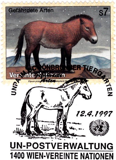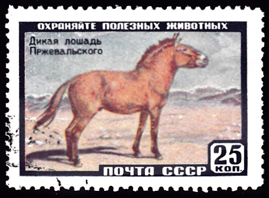In der Serie aus Kambodscha erschien auch eine Marke (MiNr 1058) mit einem Schimmel der Rasse Bretone.