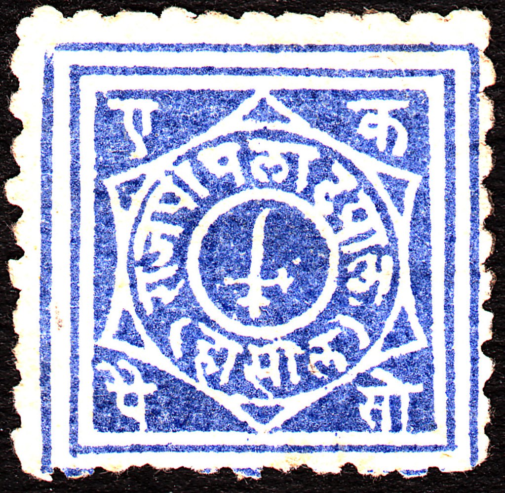 Diese Freimarke erschien 1880 und wurde katalogisiert als Rajpipla MiNr. 1: