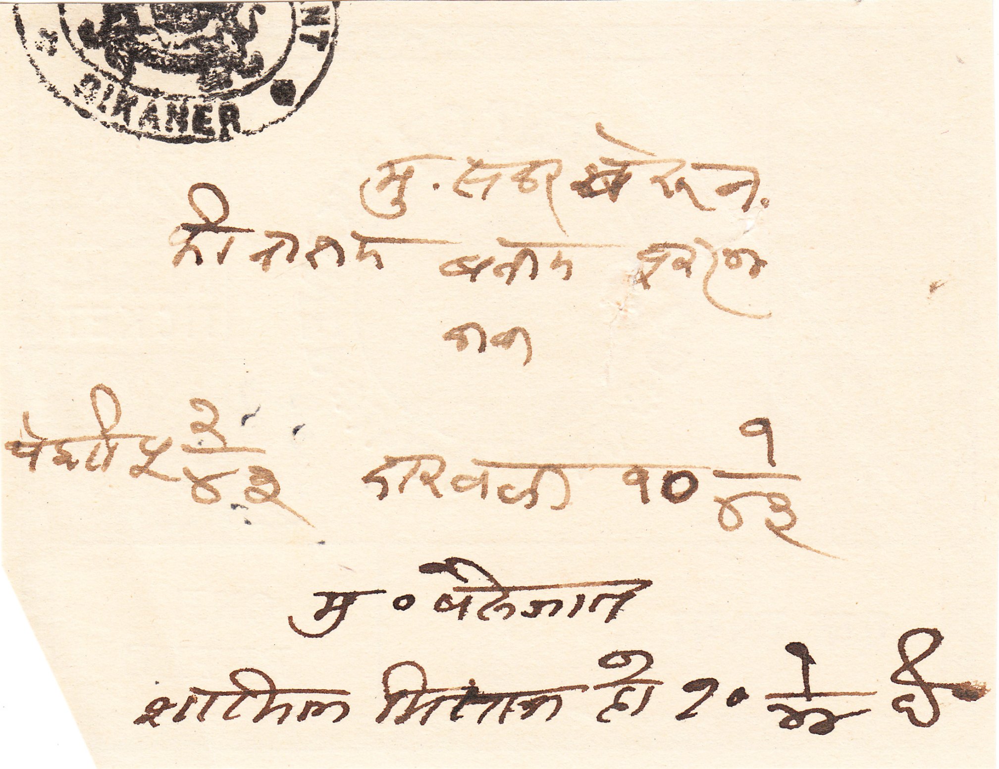 Hier ein "TALBANA TICKET" = eine Quittung für Prozeßgebühren zu einer Rupie: