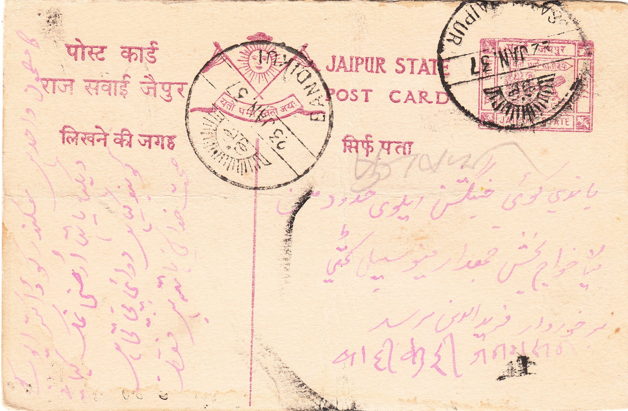 Ganzsachen und Ganzstücke sind und bleiben doch das Salz in der Suppe jeder Briefmarkensammlung, daher freue ich mich, Euch hiermit diese frisch erstandene Ganzsache aus Jaipur zeigen zu können.