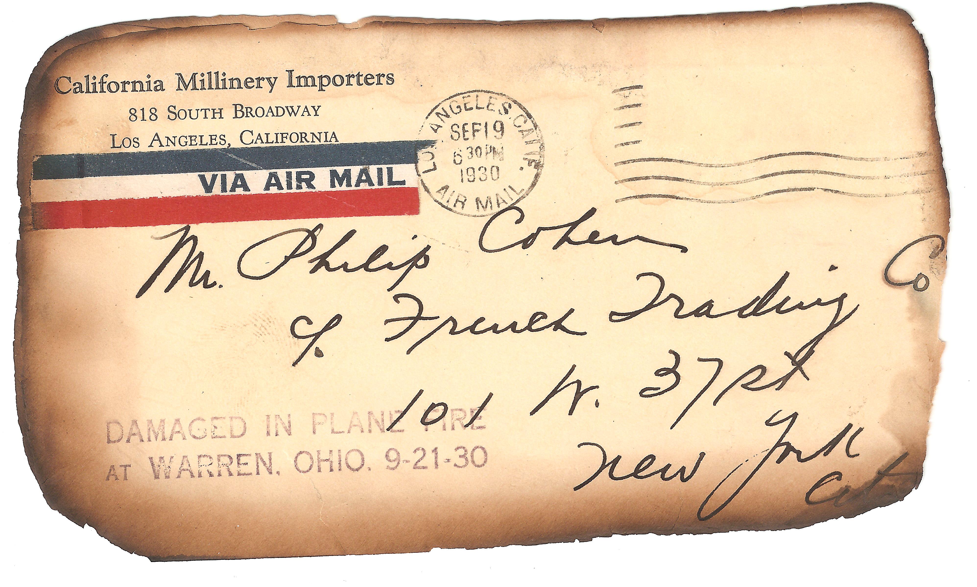 Das Flugzeug ist am 21. September 1930 in Warren,Ohio abgestürzt, dabei wurde der Brief in den Flammen beschädigt und bekam von der Post den Stempel