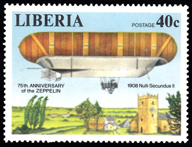 Hier zeige ich eine Marke aus Liberia (MiNr 1058 A) mit einer Abbildung des Luftschiffes "Nulli Secundus II".