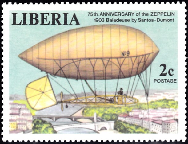In einer Serie aus Liberia ist diese Marke (MiNr 1054 A) mit einer Abbildung des Luftschiffes "La Baladeuse" erschienen.