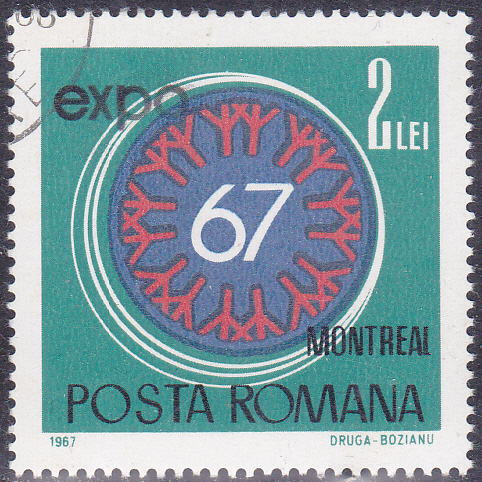 Dieses Postwertzeichen aus Kamerun zeigt das Logo der Expo 67: