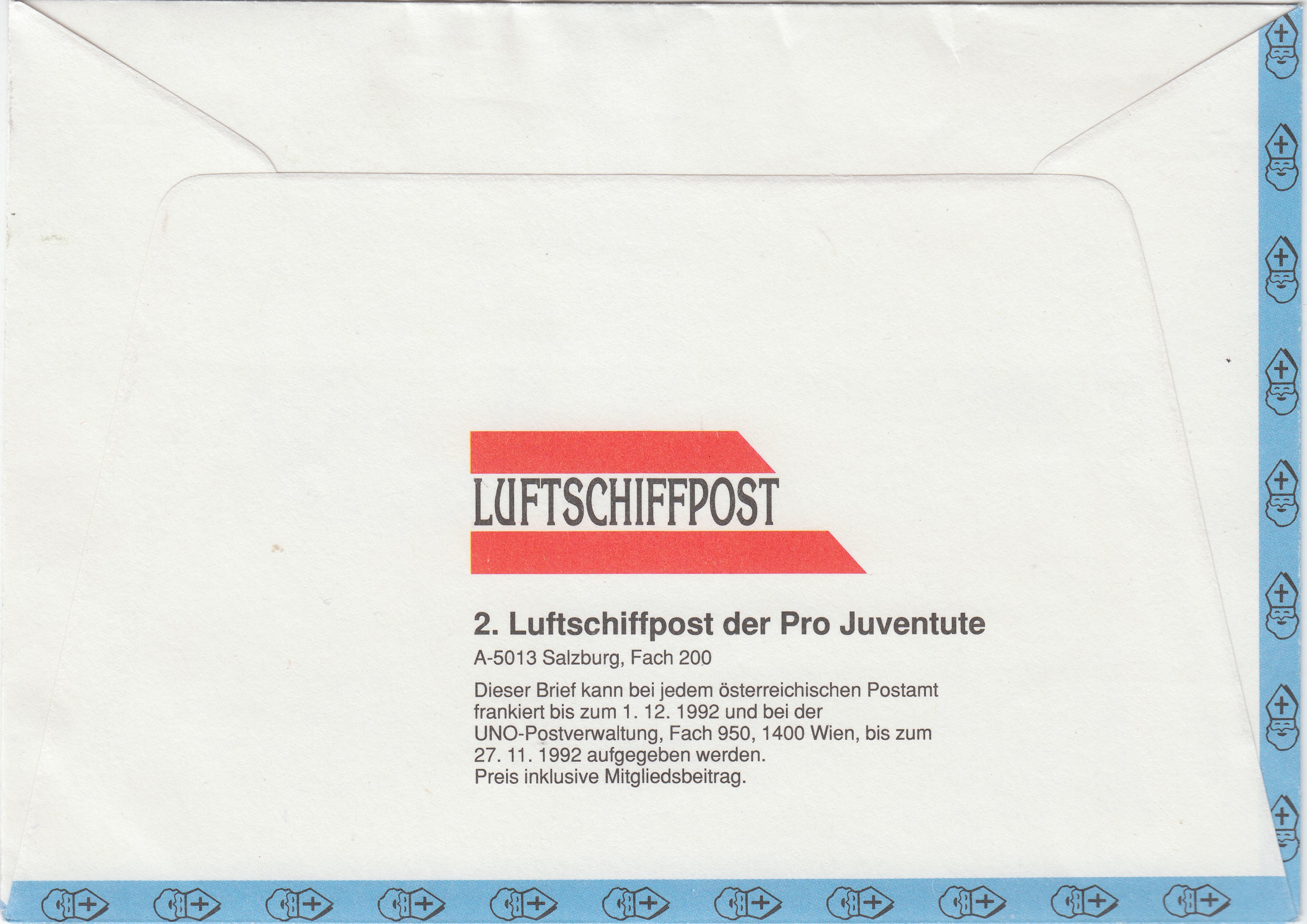 Zur Eröffnung der Briefmarkenausstellung im Rang 1 sowie der Fachmesse "Marke & Münze" startete am 22.05.1992 um 7 Uhr früh vom Grazer Messegelände das Luftschiff "PESTALOZZI" zu seiner Jungfernfahrt. In 600 m Höhe fuhr es mit einer Geschwindigkeit von 12 km/h in Richtung Flughafen Graz-Thalerhof. Nach drei Kilometern Fahrt kam der Flughafen in Sicht und das Luftschiff setzte wie vorgesehen auf der Graspiste sanft auf. Leider war die Boden-Crew noch nicht eingetroffen und daher startete das Luftschiff mit Genehmigung des Towers erneut und absolvierte eine "Ehrenrunde" über Abtissendorf. In der Zwischenzeit trafen sowohl das Postfahrzeug als auch die Bodenmannschaft ein und die offizielle Entladung der beförderten Post, 14.200 Belege mit österreichischer Frankatur sowie 18.100 Belege mit UN-Frankatur, erfolgte.