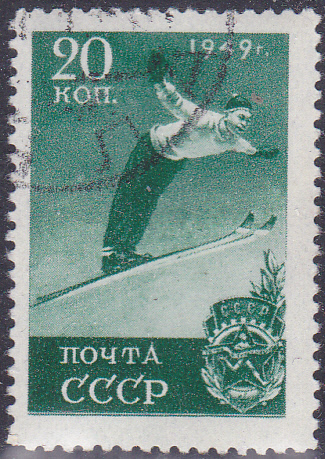 In einer Serie "Sport" erschien un der Sowjetunion diese Marke (MiNr 1409) mit einem Skispringer.