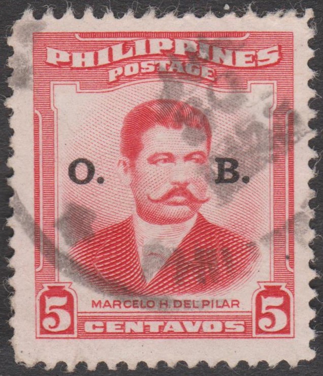 Philippinen Dienstmarke MiNr. 5 erschien am 18.05.1931, indem die Freimarke MiNr. 275 A mit einem Buchdruck-Aufdruck "O. B." versehen wurde.