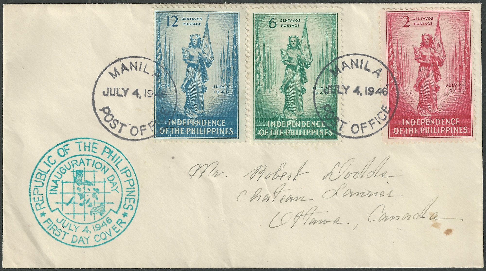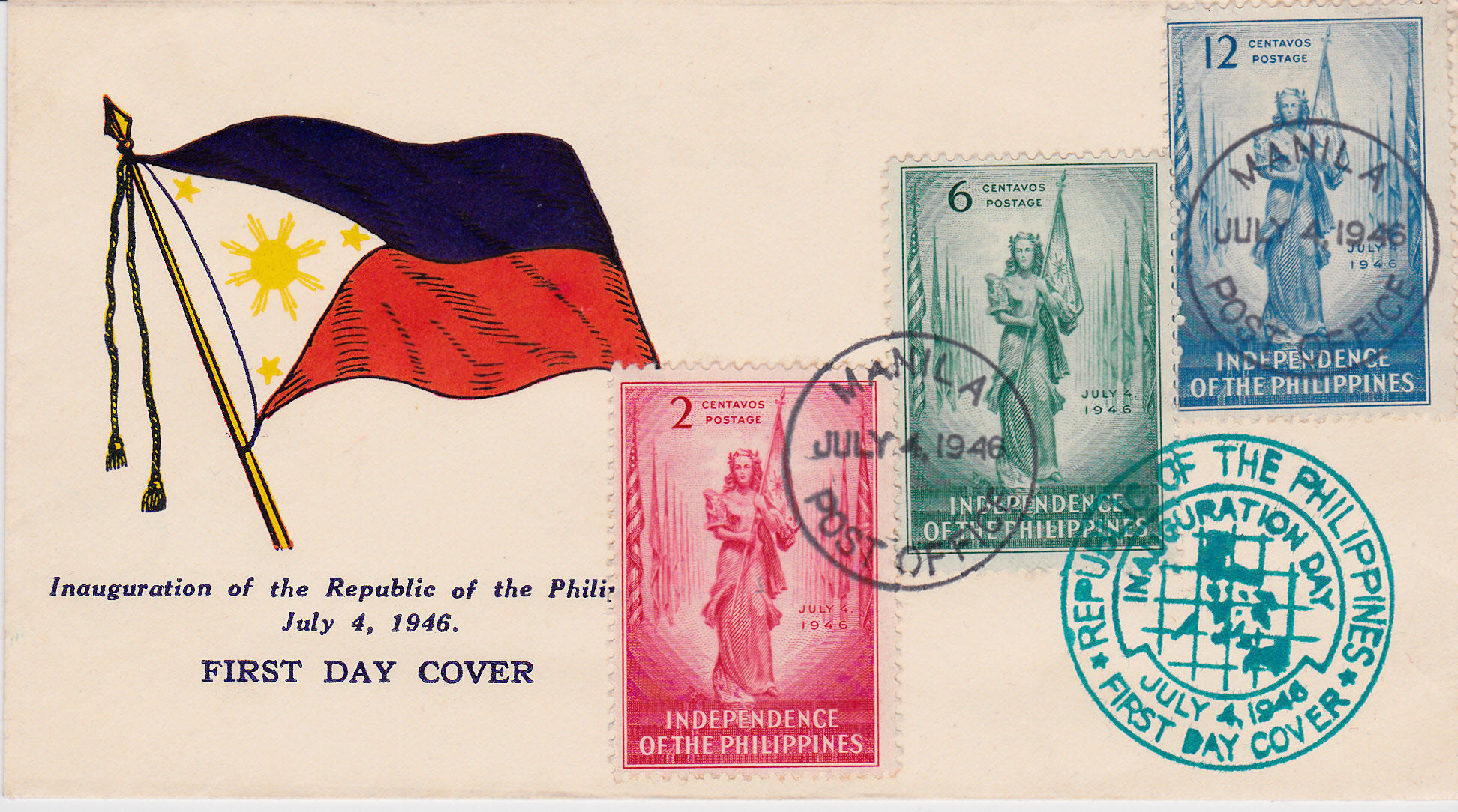 In diesem Thema möchte ich ab und an einige interessante Briefmarken und Belege von den Philippinen vorstellen. Den Anfang dabei möchte ich mit der Ausgabe zur Unabhängigkeit machen, nach einer sehr langen spanischen Kolonialherrschaft, einem prägenden halben Jahrhundert unter amerikanischer Verwaltung und dem japanischen Regime während der Besetzung im Zweiten Weltkrieg wurden die Philippinen 1946 in die Staatengemeinschaft aufgenommen.
