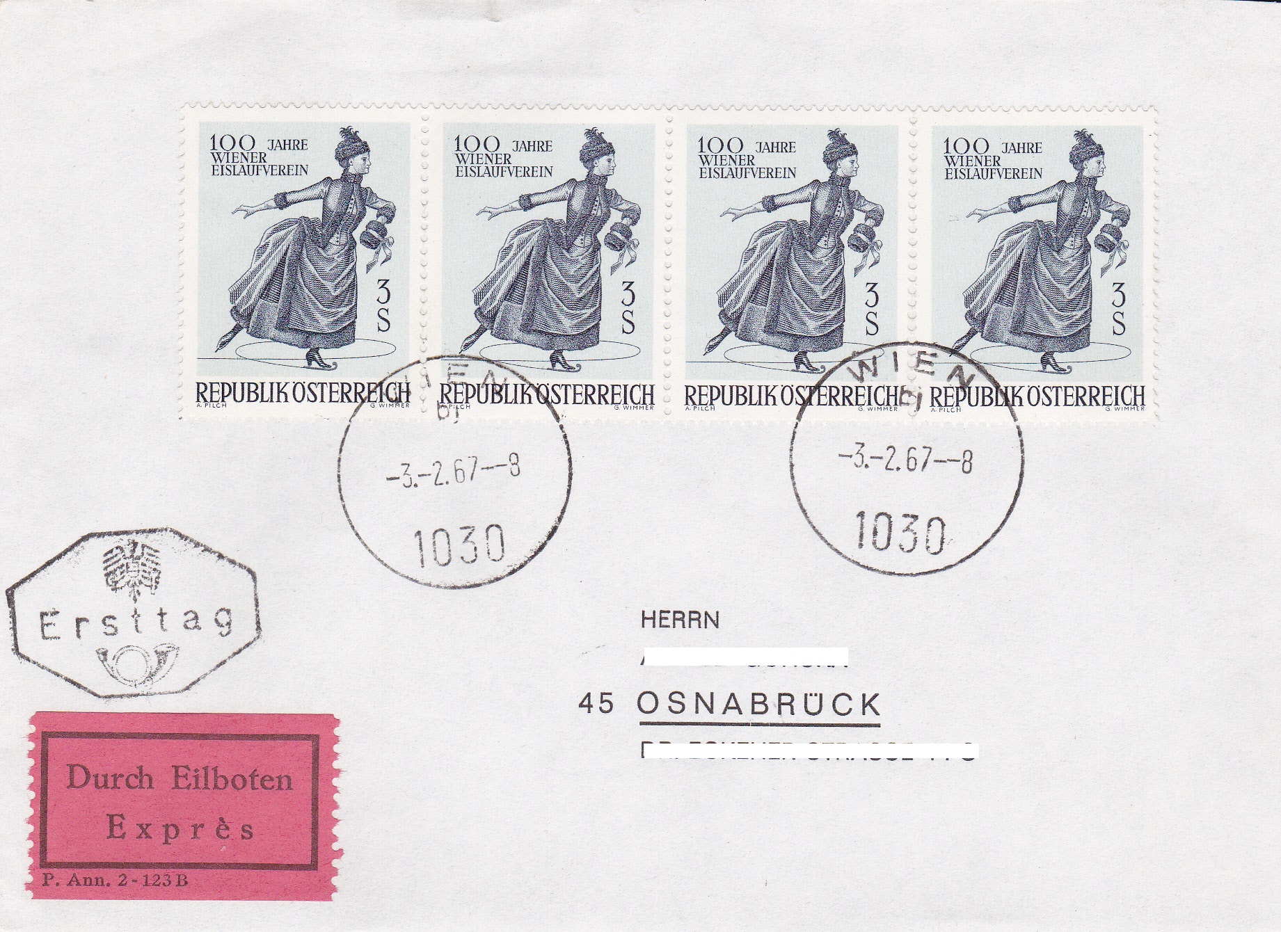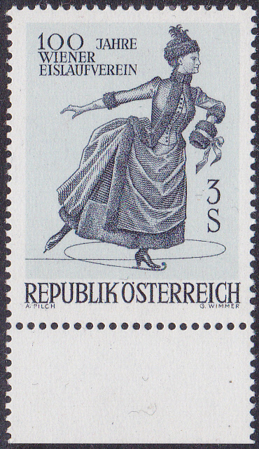 Zum Jubiläum "100 Jahre Wiener Eislaufverein" ist 1967 in Österreich eine Marke (MiNr 1331) mit der Abbildung einer Eiskunstläuferin aus der Anfangszeit des Eiskunstlaufes.