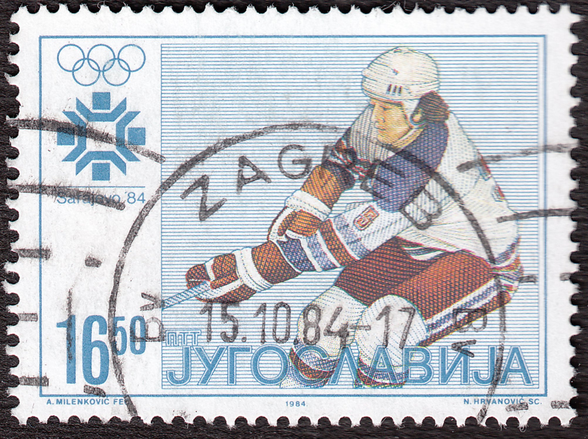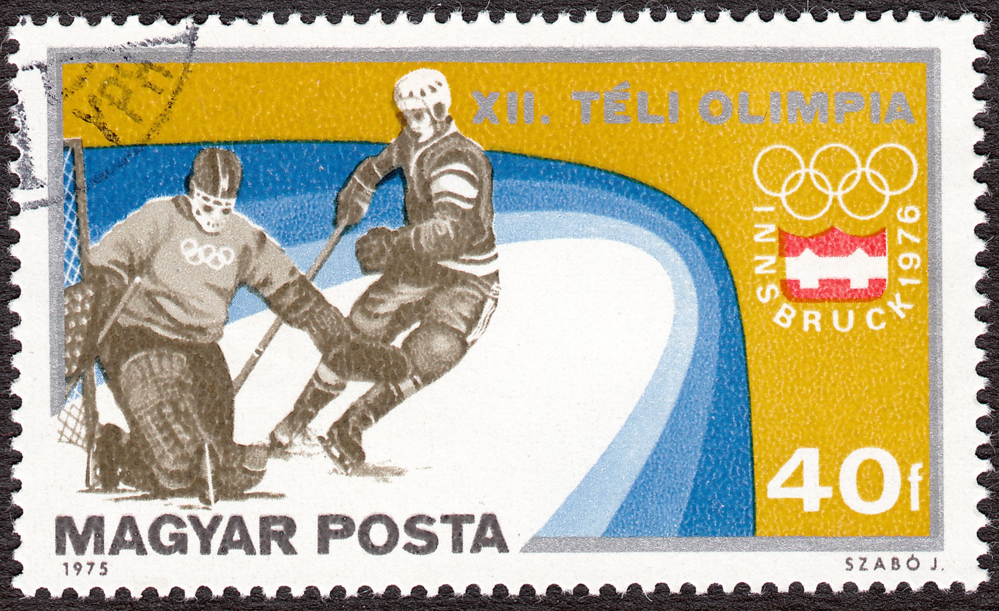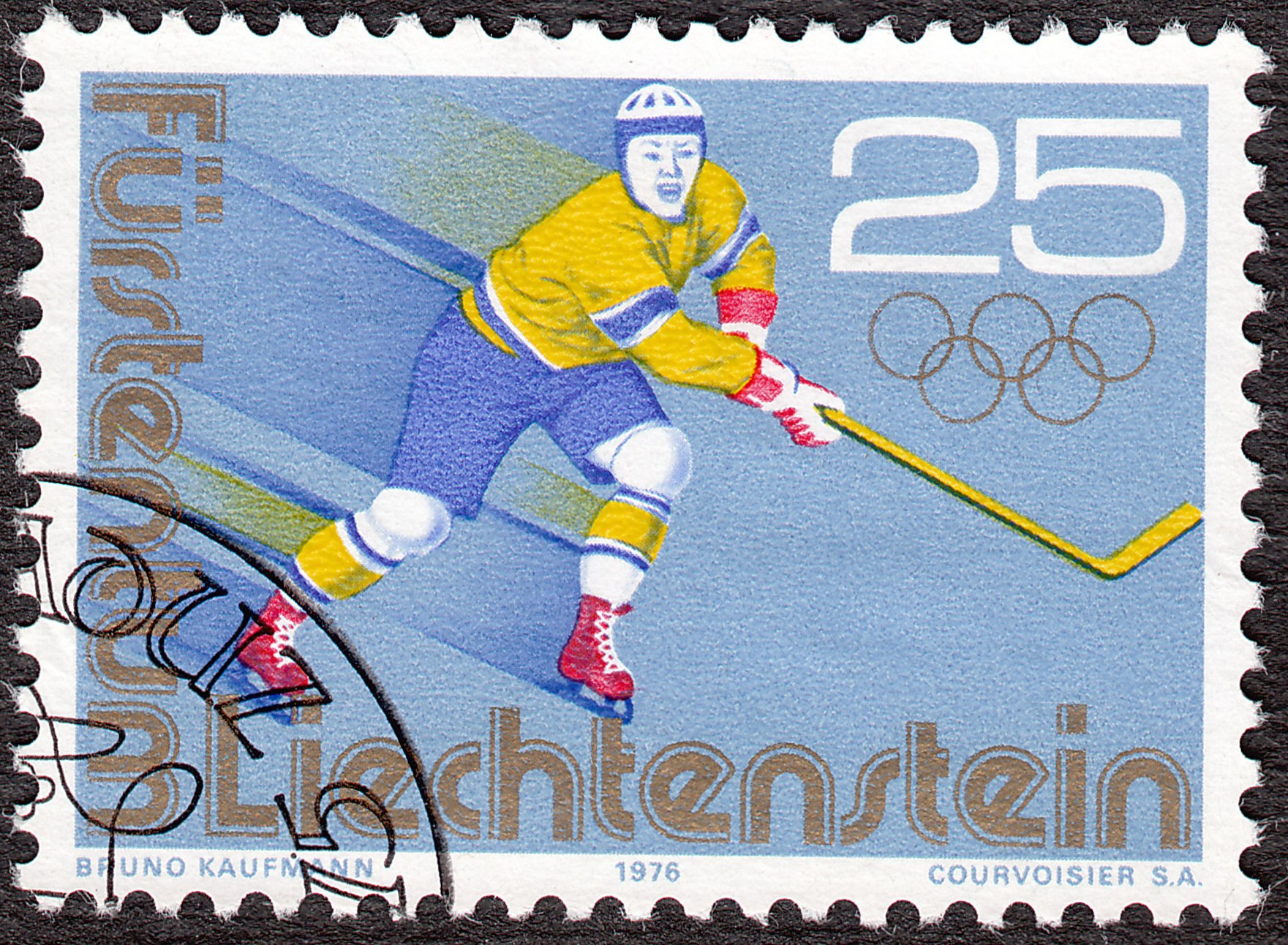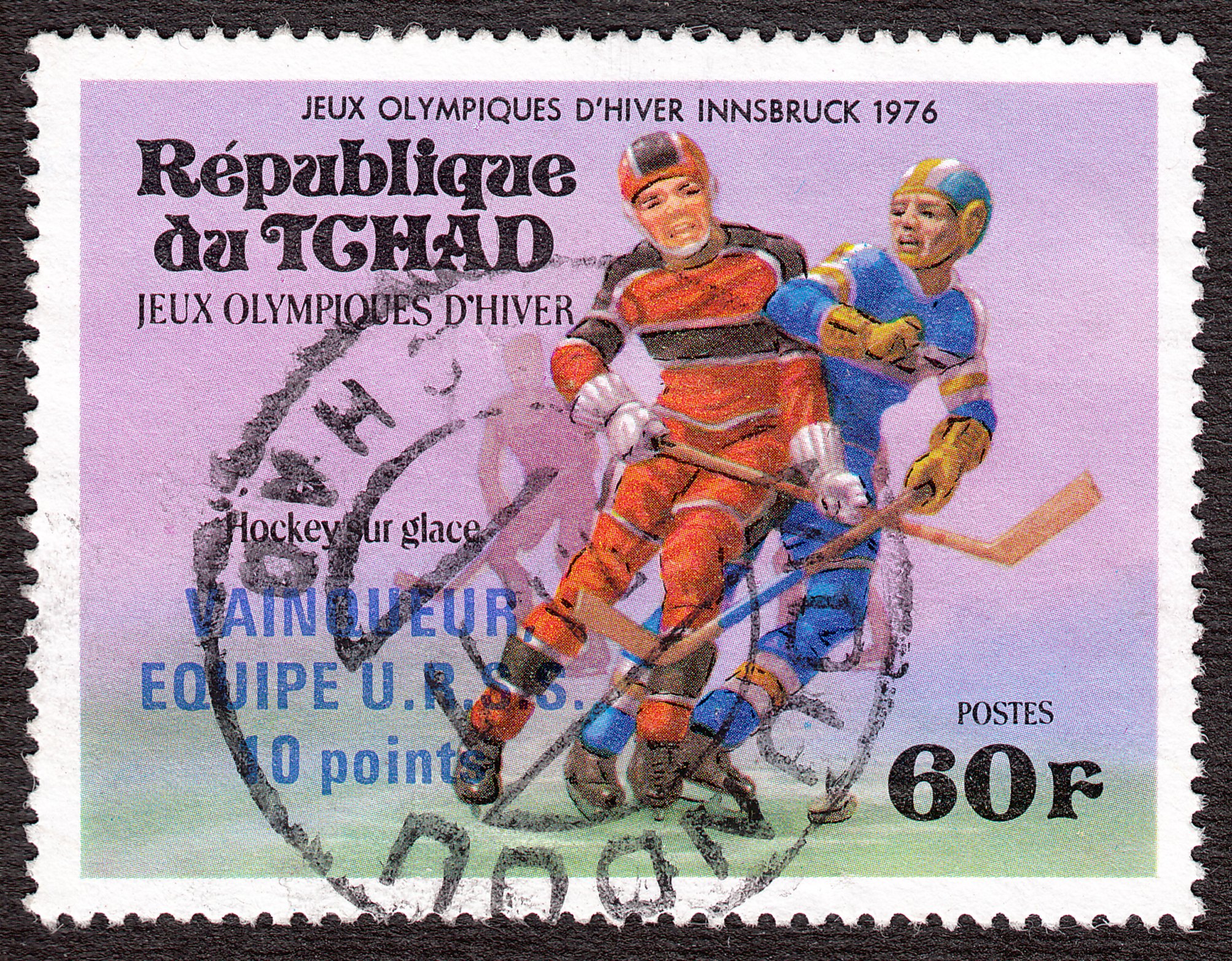 Dieses Postwertzeichen aus dem Tschad würdigt den Olympiasieg der Sowjetunion bei der Olympiade 1976 in Innsbruck, der mit 5 Siegen gleich 10 Punkten ungeschlagen erreicht wurde: