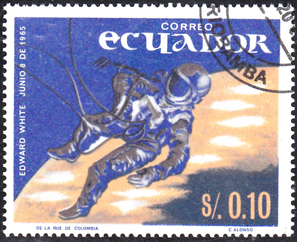Aus einer Serie aus Ecuador zum Thema "Erfolge in der Weltraumfahrt" stammt diese Marke (1208) mit einer Abbildung von Edward White im Weltraum.
