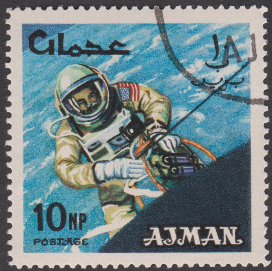 Ajman MiNr. 96 zeigt den Raumausstieg von Edward White aus Gemini 4: