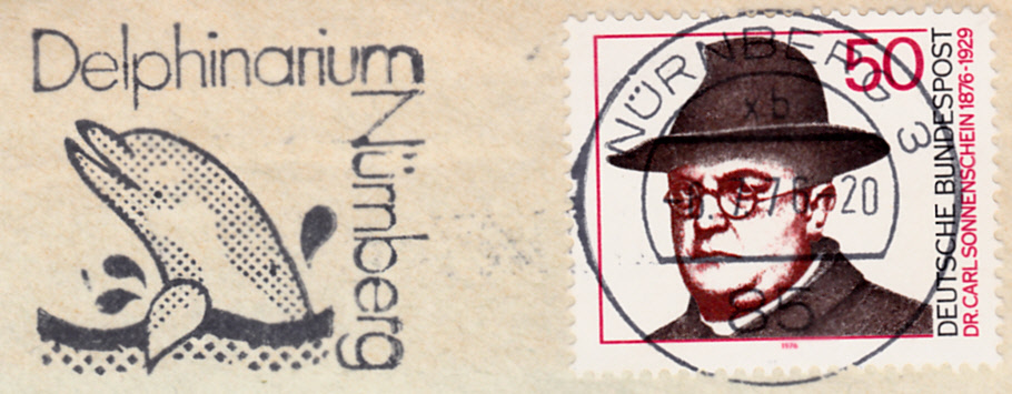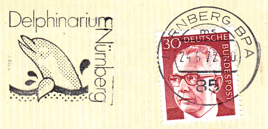 Dieser Maschinenwerbestempel vom 1.8.1973 macht Werbung für das Delfinarium im Nürnberger Tiergarten.