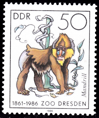 In der Serie Zootiere aus der DDR erhielt der Zoo Dresden eine Marke (MiNr 2031)mit der Abbildung von einem Orang-Utan (Pongo pygmaeus) .