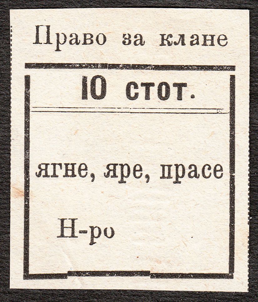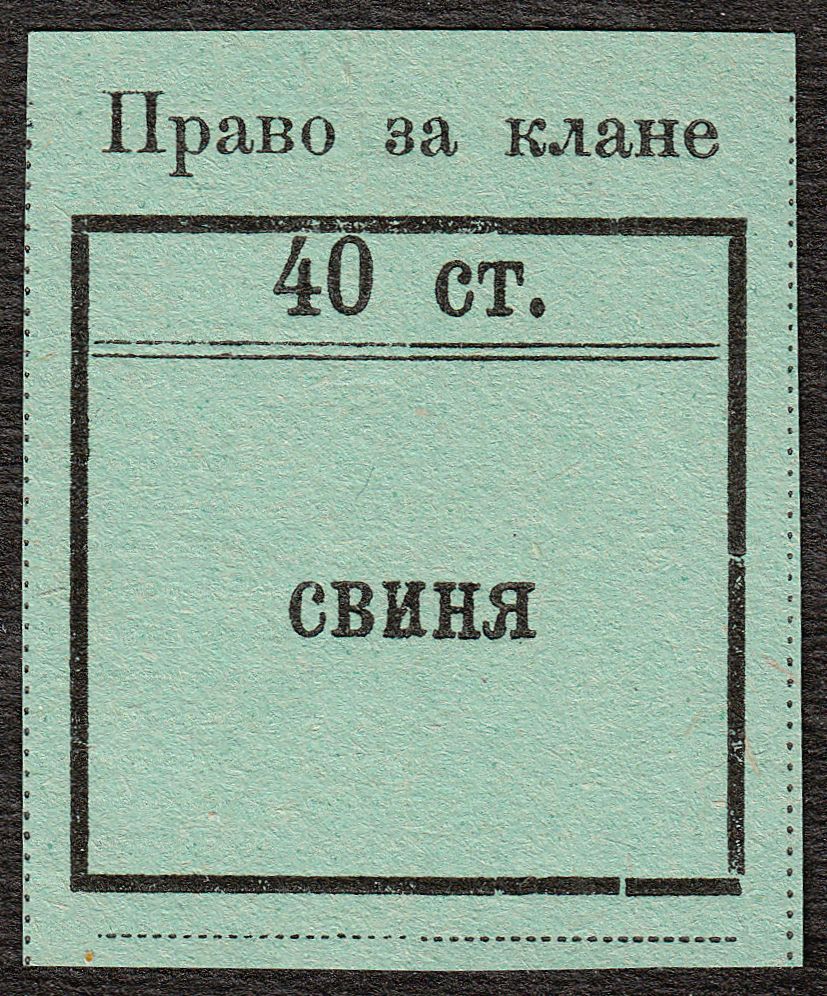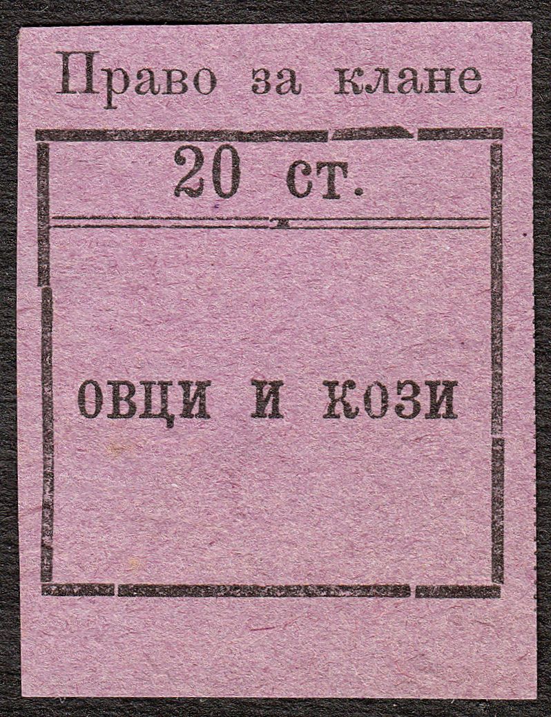 Die Wertstufe zu 10 Stotinki galt pro Lamm, Kalb oder Ferkel = прасе, die Wertstufe zu 20 Stotinki galt pro Schaf oder Ziege, die Wertstufe zu 40 Stotinki galt pro Schwein und die Wertstufe zu 1 Lewa galt pro Ochse, Kuh oder Büffel.