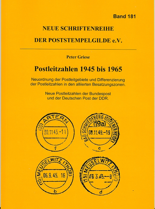 Der Band 181 mit seinem Titel "Postleitzahlen 1945 bis 1965" bietet dem Sammler der alliierten Besatzungszonen vieles zu den Stempeln jener Zeit. Erschienen 2011, das Vorwort schrieb der Gildeleiter persönlich, kann man von "sehr aktuellem Forschungsstand" ausgehen.