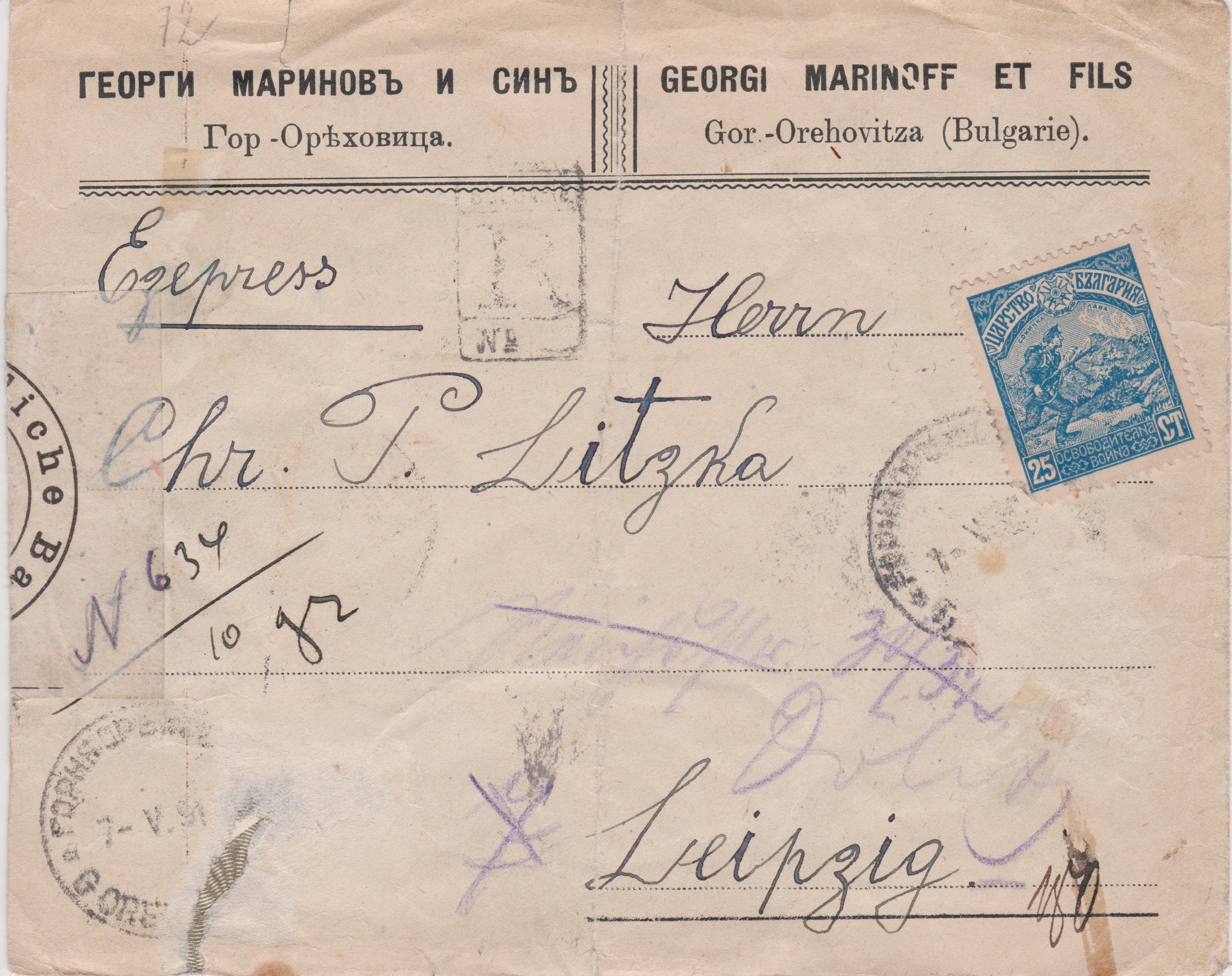 Der Beleg wurde in Bulgarien von der "военна цензура комисия = Militär Zensur Kommission" in Sofia mit einer Briefverschlußmarke versehen.