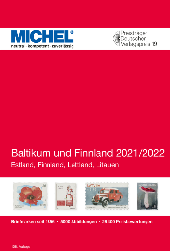 Am 2. September 2021 erschien der Michel Katalog Baltikum und Finnland 2021/2022 (E 11) in der 106. Auflage in Farbe mit 512 Seiten im Format 155 x 230 mm als Hardcover. Er kostet in Papierversion als Katalog 52,00 €. Er enthält die Länder Estland, Finnland, Karelien, Lettland, Litauen, Mittellitauen und Nordingermanland.