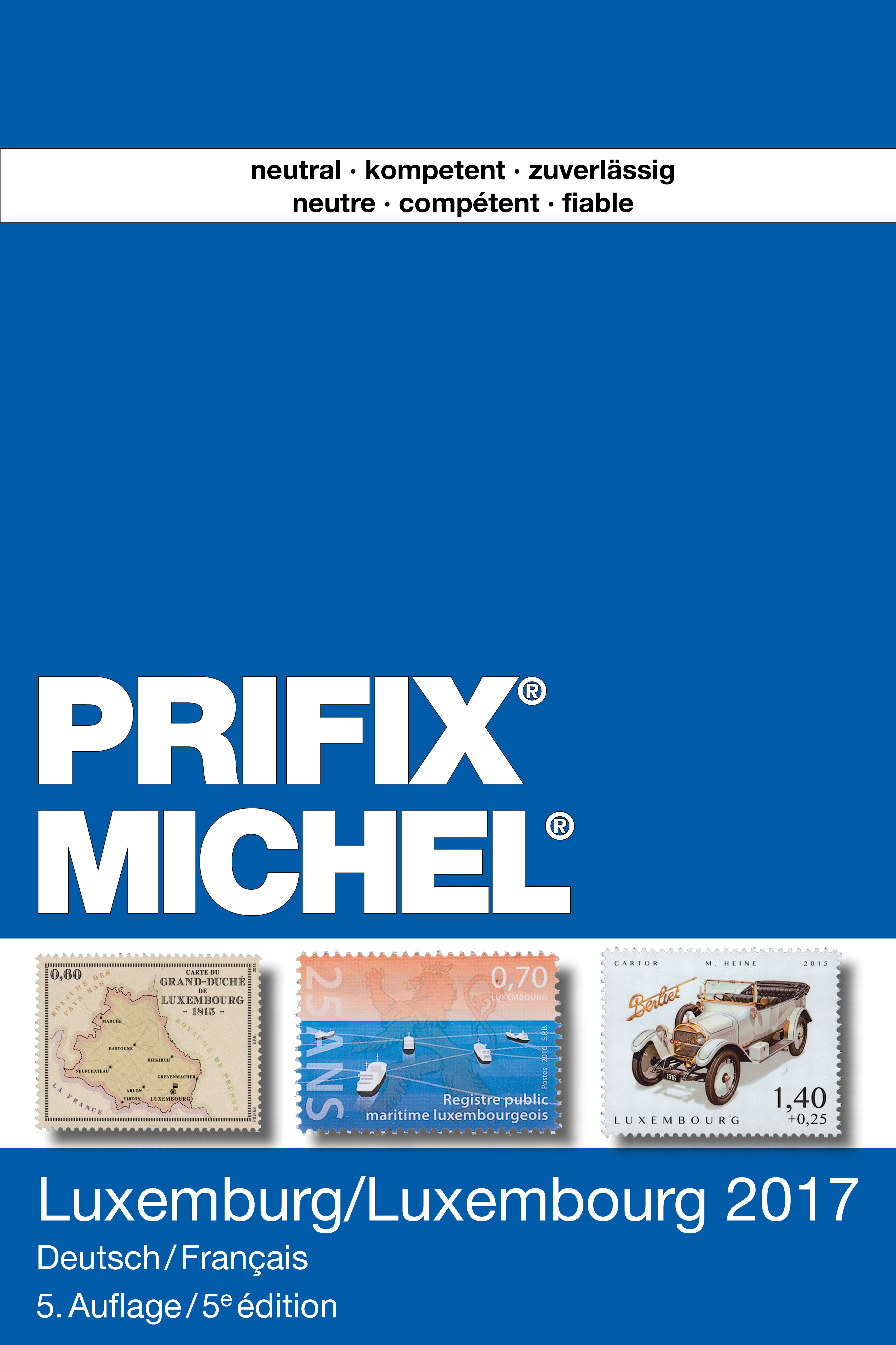 Der PRIFIX Michel Luxemburg/Luxembourg 2017 ist am 2.12.2016 in der 5. Auflage / 5e édition, in Farbe mit 176 Seiten im Format 150 x 225 mm kartoniert erschienen. Der Katalog ist zweisprachig: Deutsch (Text in Schwarz) und Französisch (in Blau). Er kostet in Papierform 28,00 € und in der MICHEL-Online-Bibliothek 14,00 €.