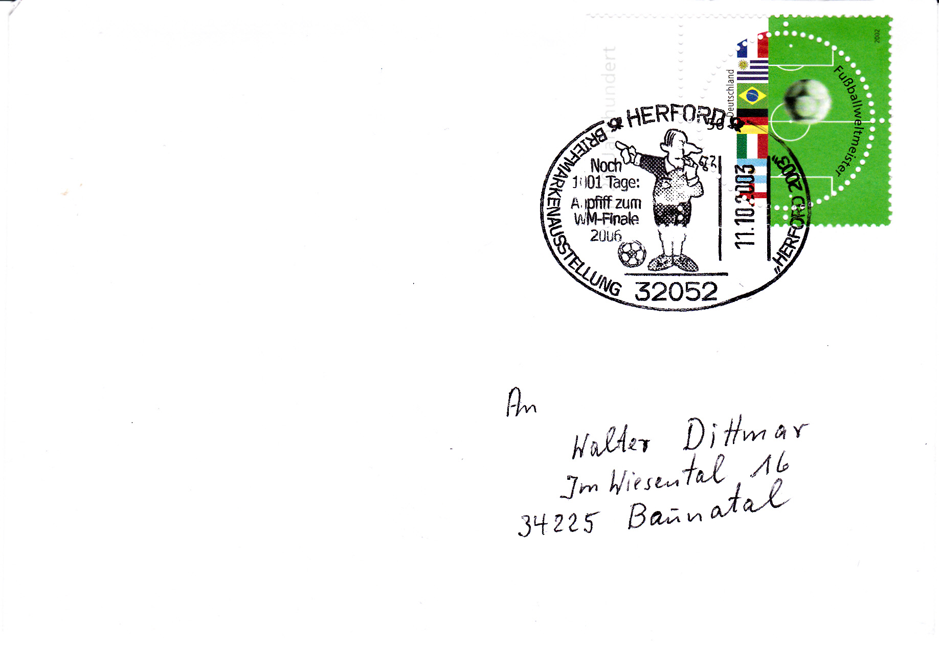 Hier zeige ich eine Ganzsache (MiNr PSo 92 II/10) mit Hologramm oben links und mit dem Wertstempel der Sportzuschlagsmarke MiNr 2517. In der Textzeile, die das Anschriftenfeld begrenzt, ist ein Hinweis auf die "FIFA WM-Stadt München".