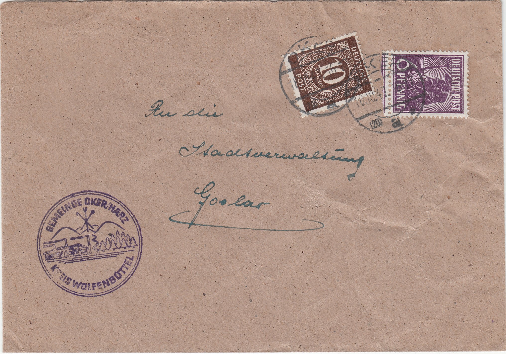 Dieser Beleg ist zum Ortstarif im vergünstigten Nachbarortsverkehr von Oker nach Goslar gelaufen: