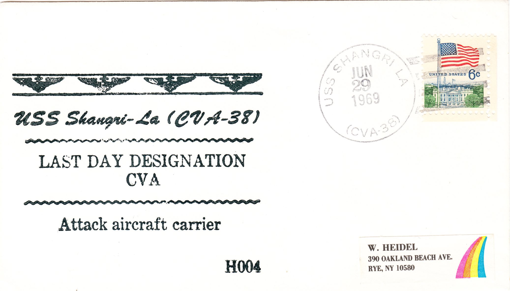 Dieser Beleg dokumentiert den 29.06.1969 als Letzttag der Kennung "CVA" = Carrier Vessel Attack: