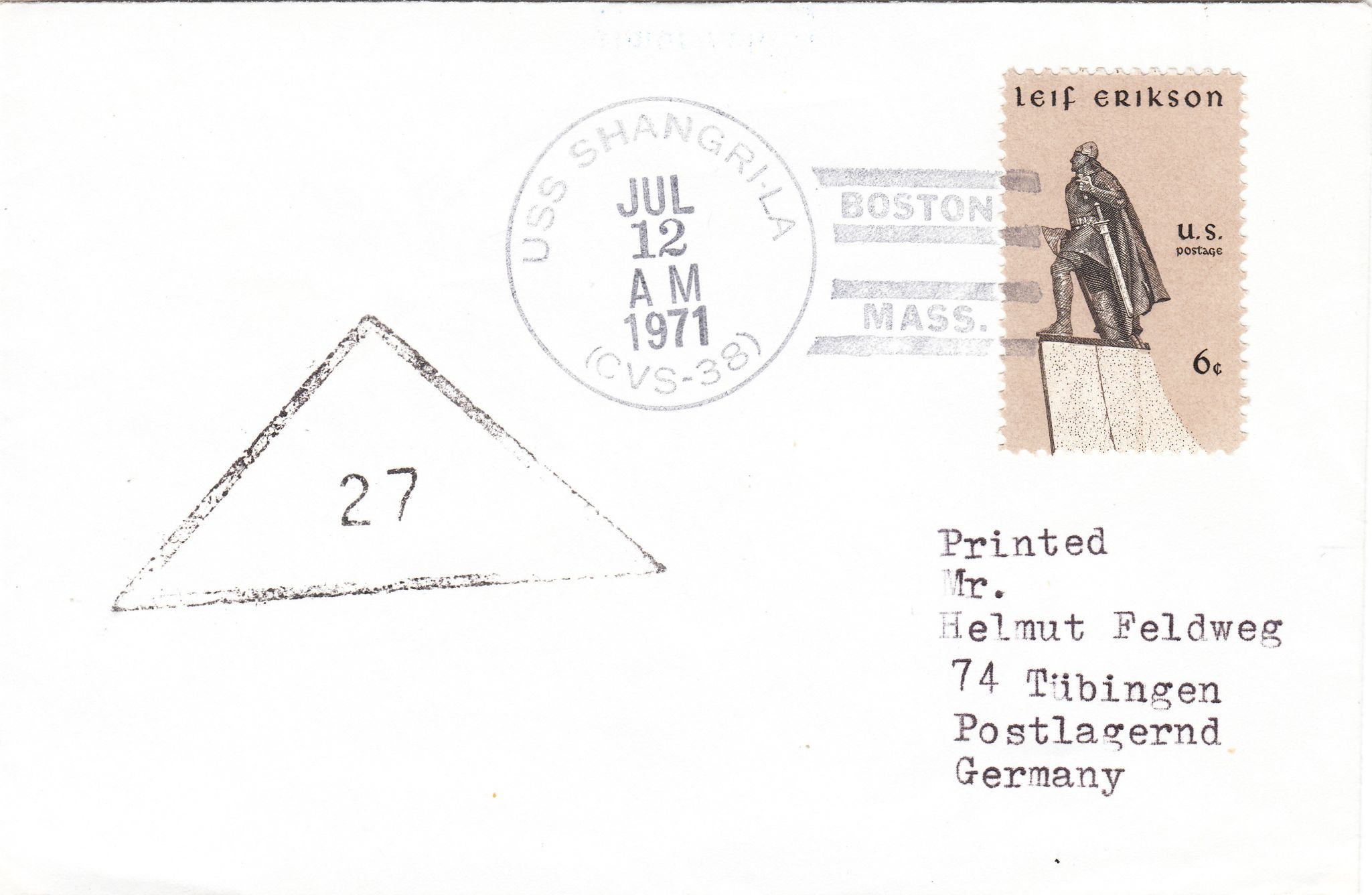 Hier ein Beleg vom 12.07.1971 während des letzten Werftaufenthalts der USS SHANGRI-LA (CVS-38) in Boston: