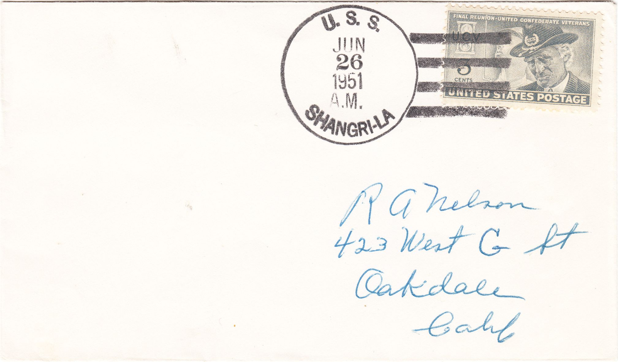 Kurz nachdem de USS SHANGRI-LA (CV-38) im Atlantik angekommen war wurde am 26.06.1951 dieser Beleg an Bord aufgegeben: