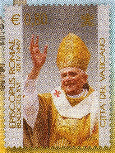 Rückseitig wird eine Vatikan-Marke "Papst Benedikt XVI" gezeigt.