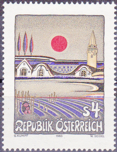 Am 7.10.1983 erschien in Österreich in der Serie "Moderne Kunst in Österreich" diese Marke (MiNr 1755) mit seinem Gemälde "Abendsonne über dem Burgenland".