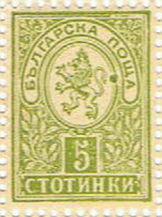 Wert / Farbe: 5 Stotinki, gelbgrün..