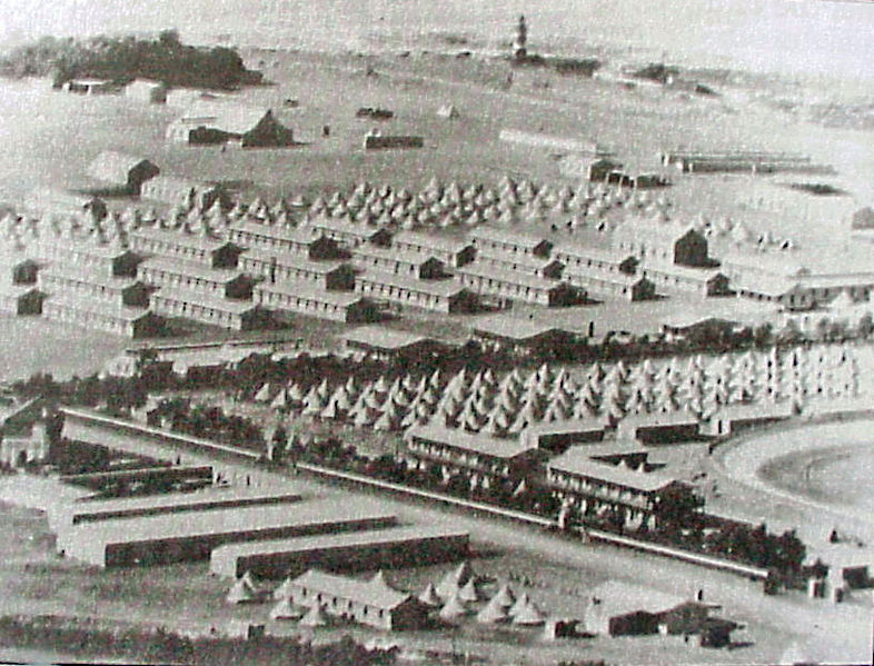 Auf diesem Originalfoto des Green Point Camp kann man gut erkennen, dass die Kriegsgefangenen im Zelt = Tent untergebracht waren: