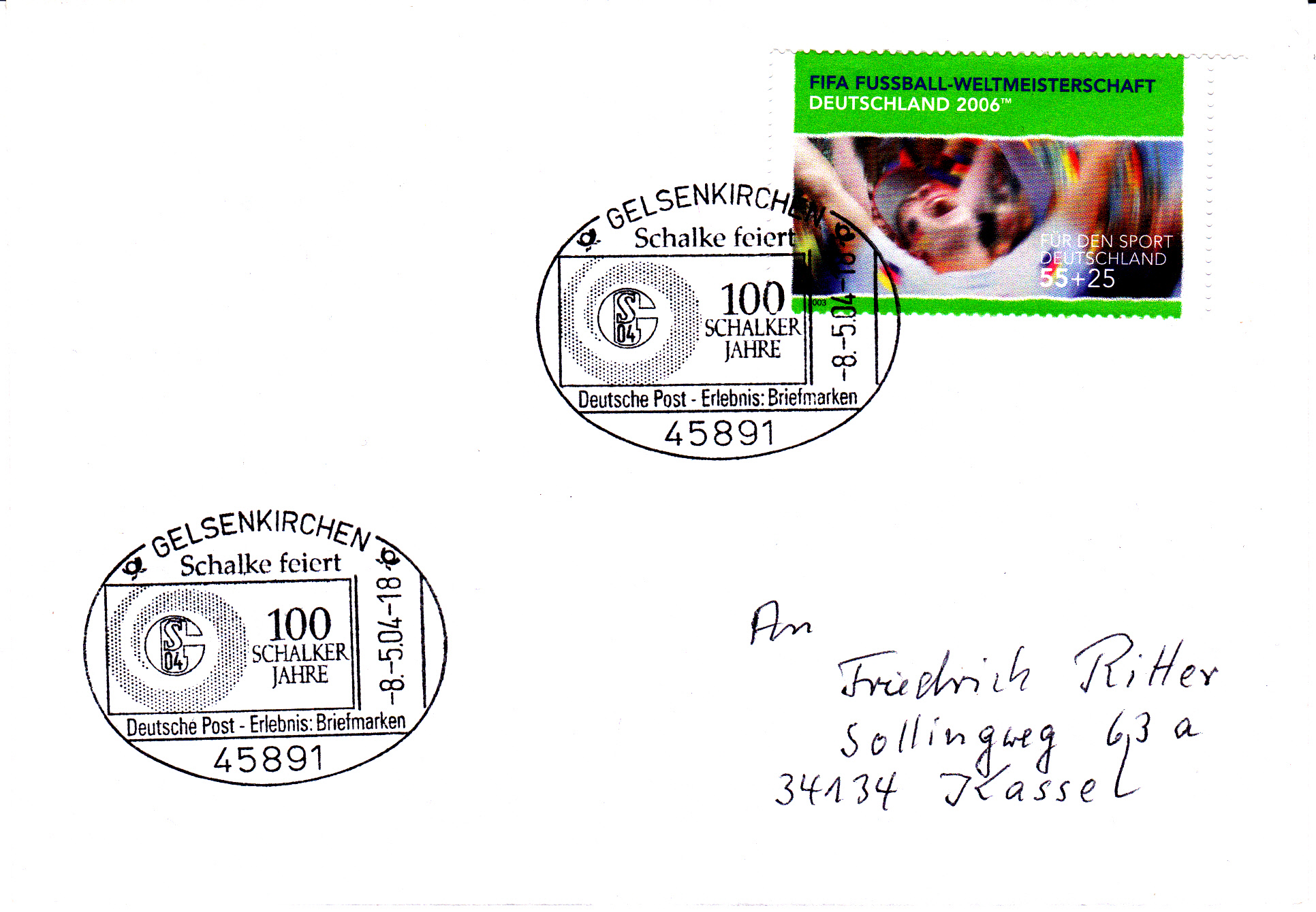 Zum 100-jährigen Jubiläum der Vereinsgründung gab es am 8.Mai 2004 in 45891 Gelsenkirchen einen Sonderstempel. Im Stempelbild ist das Vereinslogo der Jahre 1958 bis 1971 abgebildet.