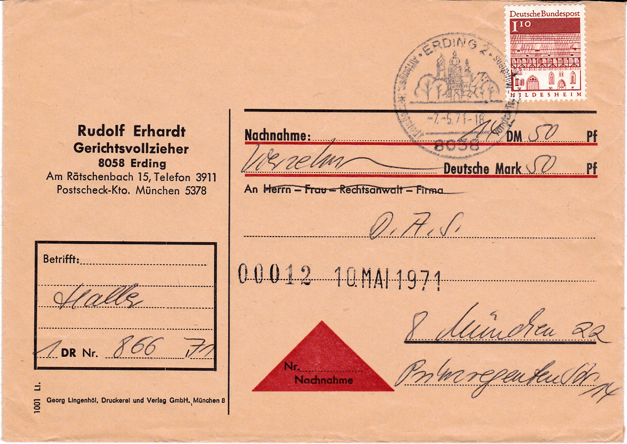 Ergänzend zum ersten Beitrag von Rüdiger zeige ich hier einen Nachnahmebrief vom 7.5.1971, der ein relativ spätes Datum dieser Portostufe zeigt.