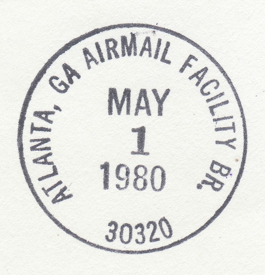 EF auf Beleg, befördert per DC 10 am 01.05.1980 auf dem Erstflug LH 438 der Lufthansa von Frankfurt/Main nach Atlanta:
