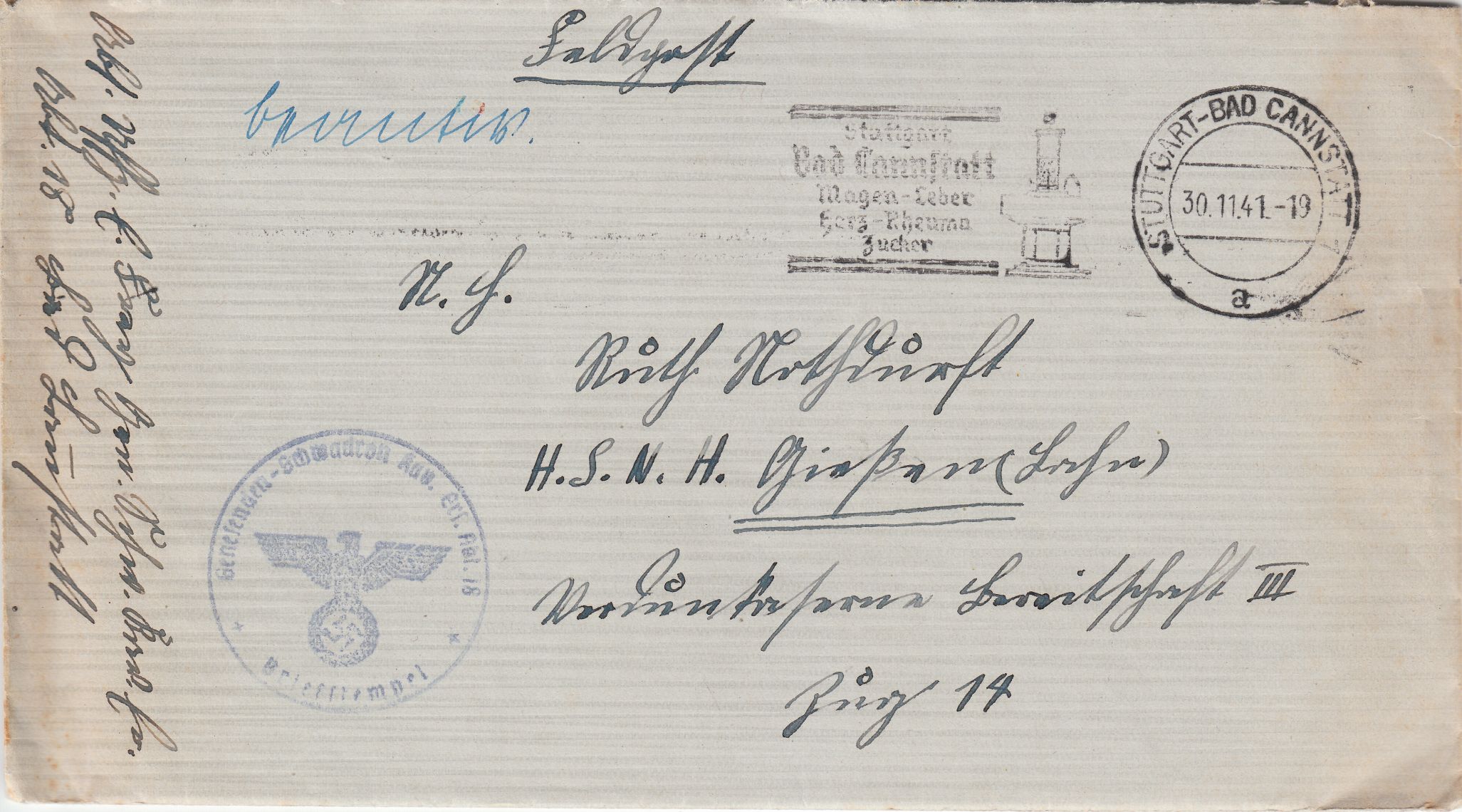 Die Portofreiheit als Feldpostsendung wird bestätigt durch einen Truppenstempel "Heeresschule für Nachrichtenhelferinnen Gießen".