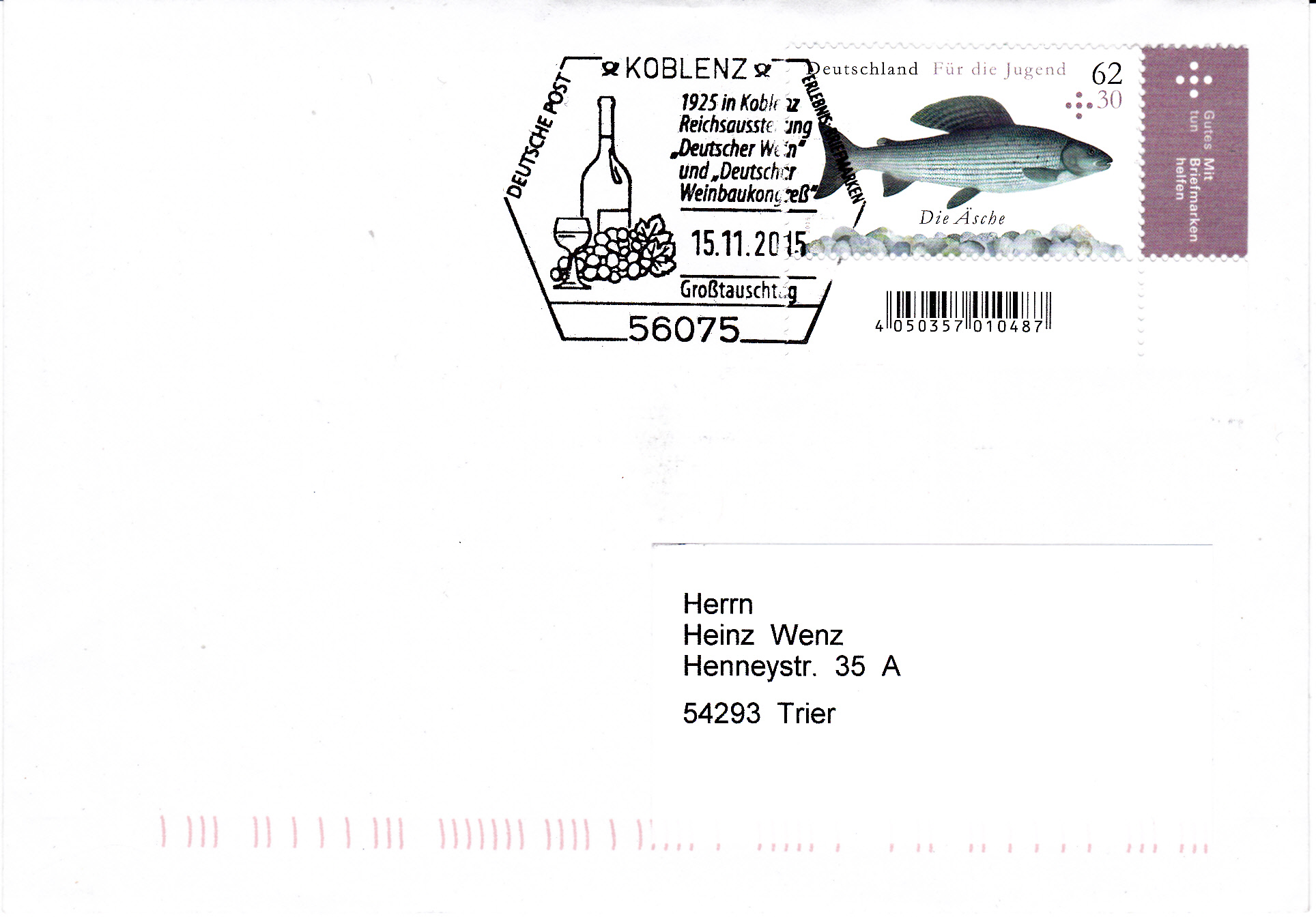 Dieser Sonderstempel zu einem Großtauschtag vom 15.11.2015 erinnert an diese Ausstellung und die Entstehung des Weindorfes vor 90 Jahren. Im Stempelbild eine Weinflasche, ein Weinglas und Weintrauben.