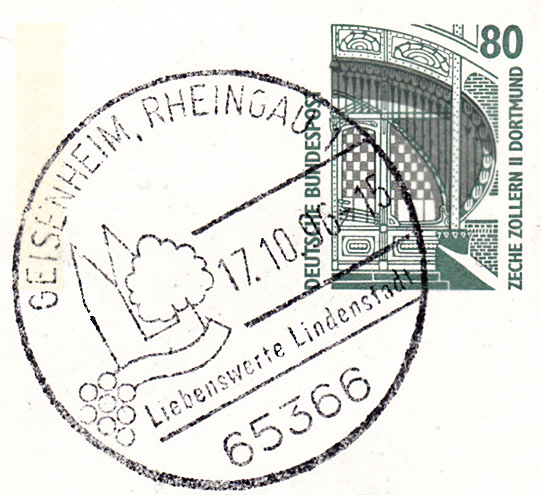 Handwerbestempel vom 17.10.1996 aus Geisenheim mit Weintrauben im Stempelbild.
