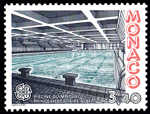 In Monaco erschienen die Europamarken 1987 zum Gemeinschaftsthema "Moderne Architektur" am 23. April 1987. Hier die Marke zu 3,40 Fr mit der Abbildung der Prinz-Albert-Schwimmhalle.