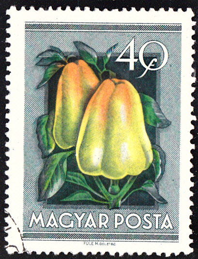 Auf dieser Marke aus Ungarn (MiNr 1387) sind Paprikaschoten (Capsicum annum) zu sehen.