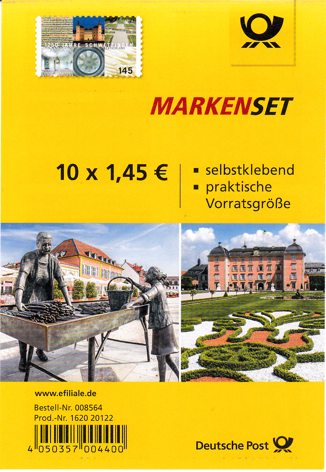 Die Marke "1250 Jahre Schwetzingen" gibt es auch als selbstklebende Marke in einem etwas kleineren Format (MiNr 3221).