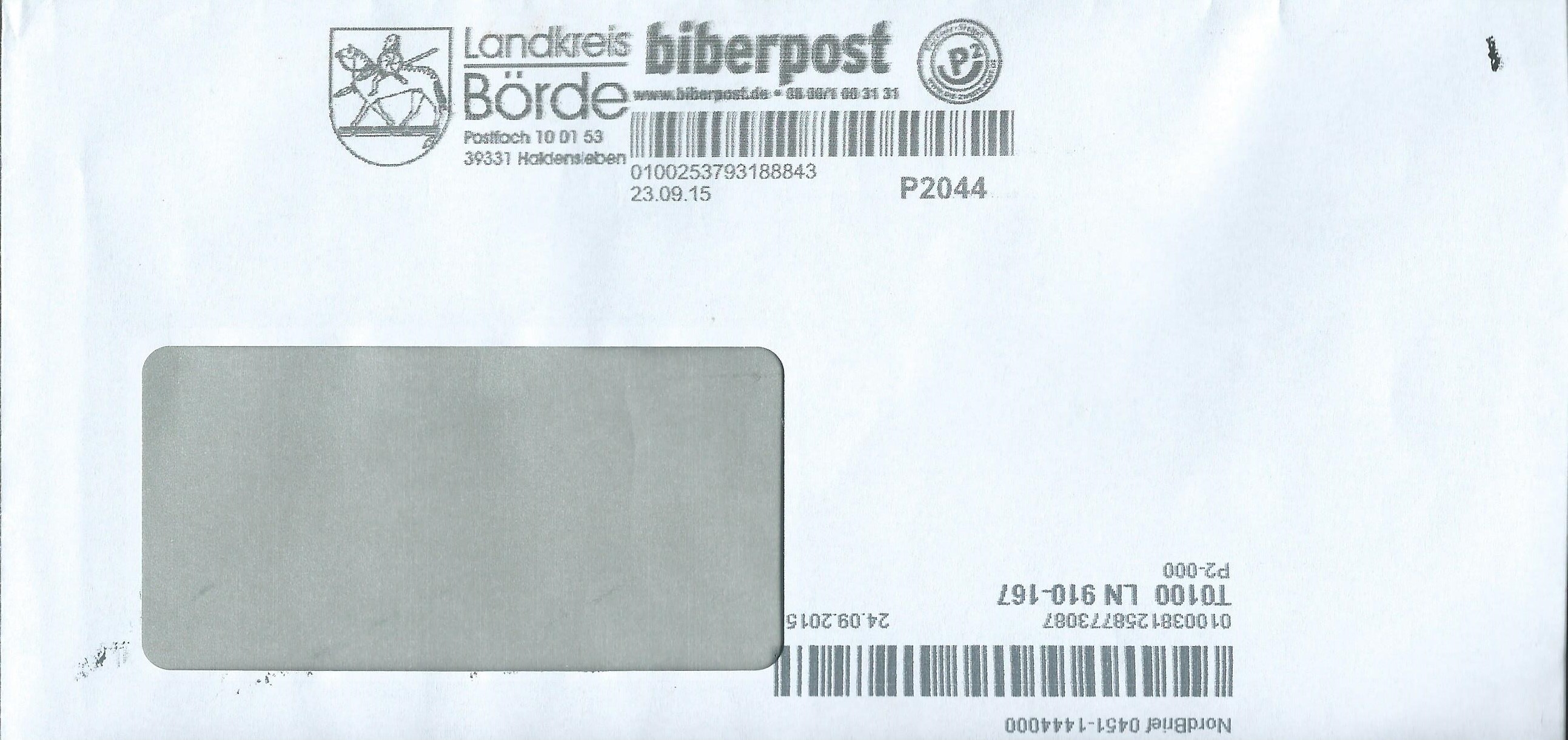 Hier ein schöner Beleg der biberpost vom 23.9.2015, Weiterbearbeitung durch Nordbrief am 24.9.2015. Infos zur biberpost hier: http://www.biberpost.de/" target="_blank