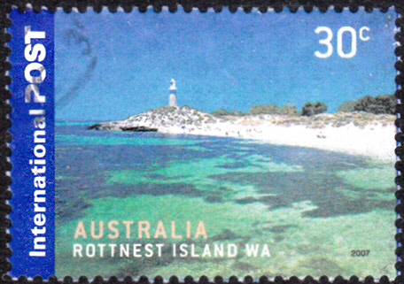 Diese Marke aus Australien (MiNr 2784) zeigt die Nordküste der Rottnest Islands im Osten mit diesem Leuchtturm.