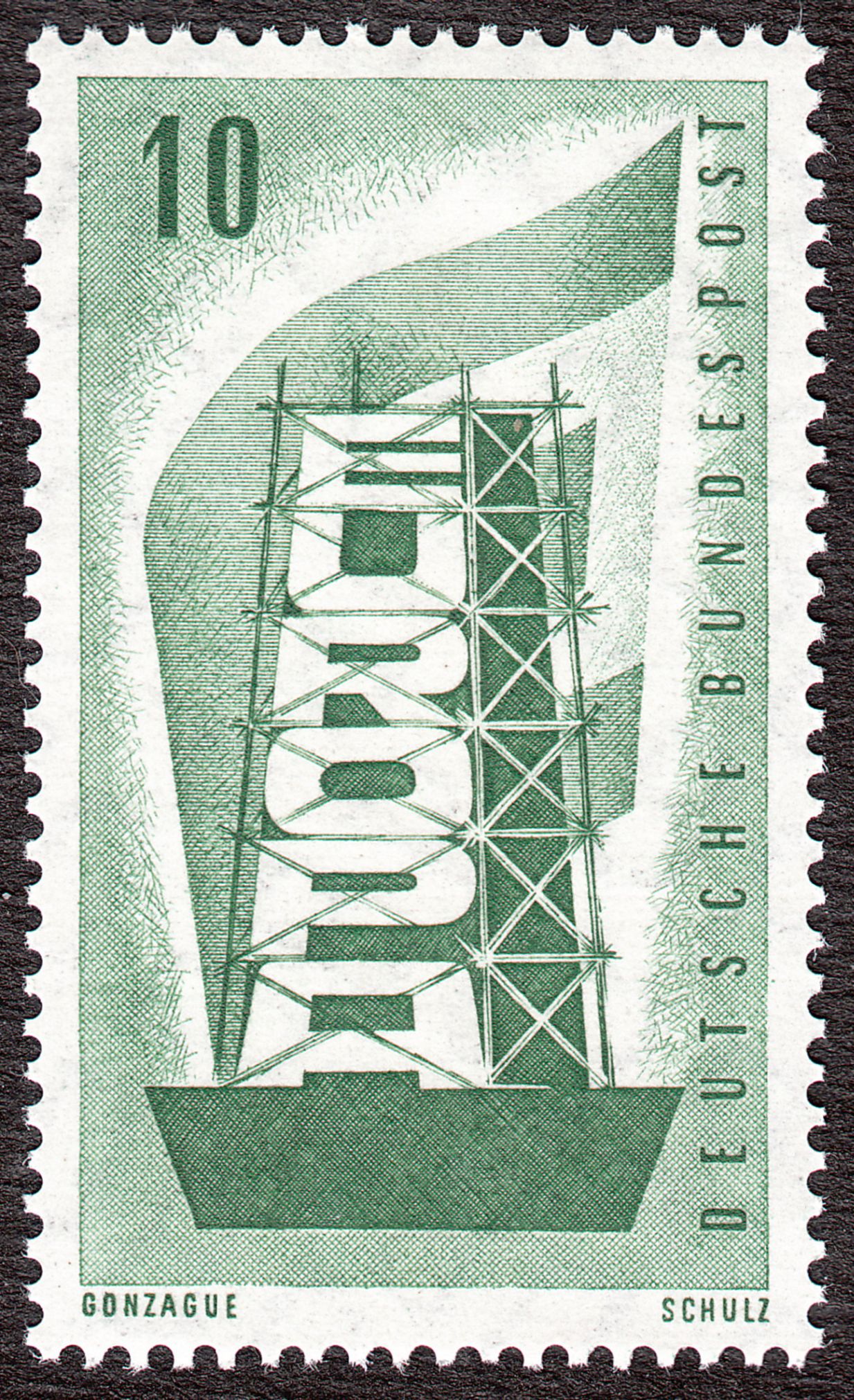 Foren-Übersicht Themen des Monats 2016 Thema des Monats Januar 2016 - EUROPA Europamarken Europamarken 1956 bis 1959 unter der Trägerschaft der Montanunion 1956 Bund MiNr. 241 - 10 Pfennig schwärzlichgrün