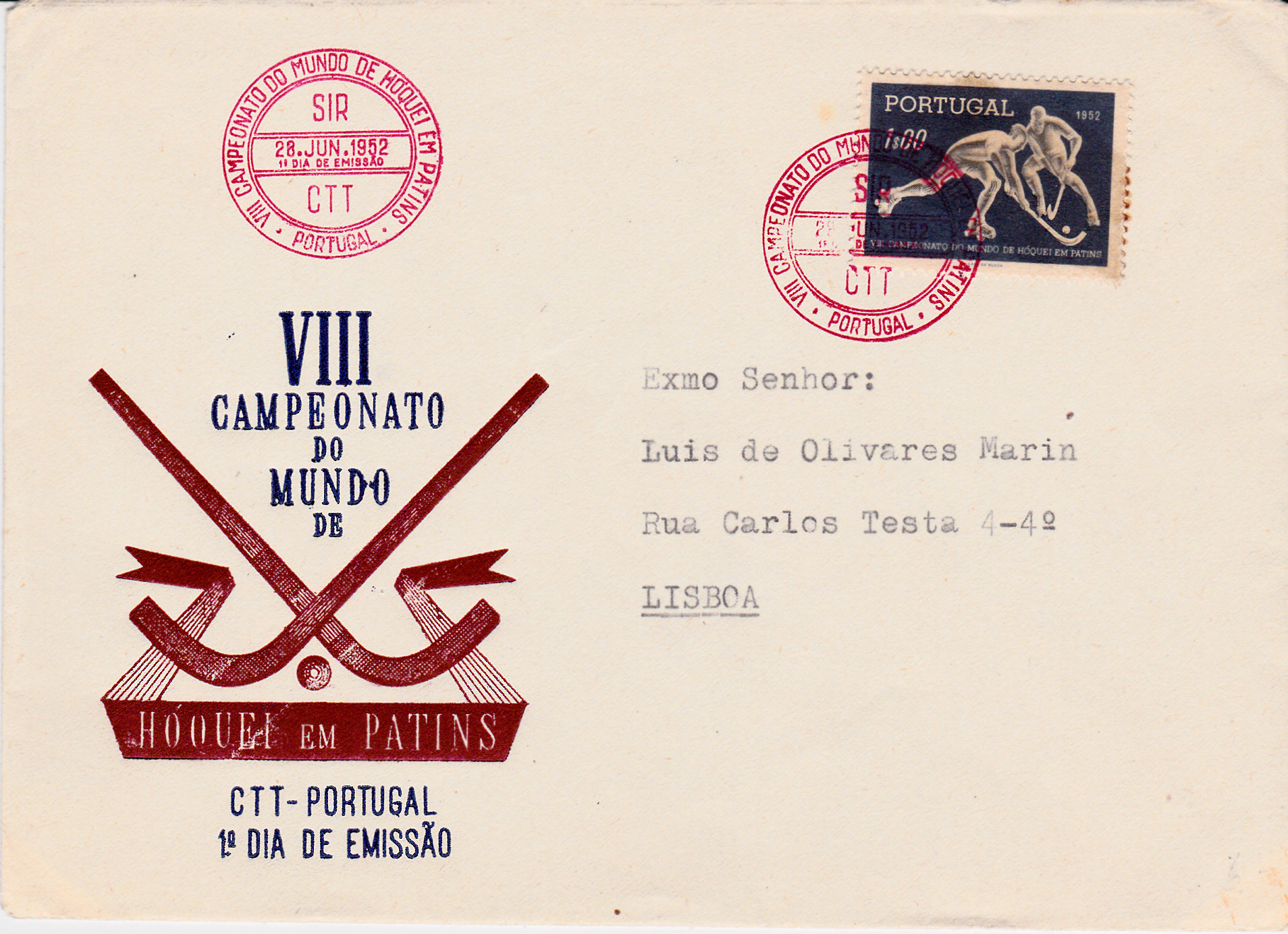 Dieses Postwertzeichen aus Portugal bietet uns eine Spielszene von der 8. WM im Rollhockey: