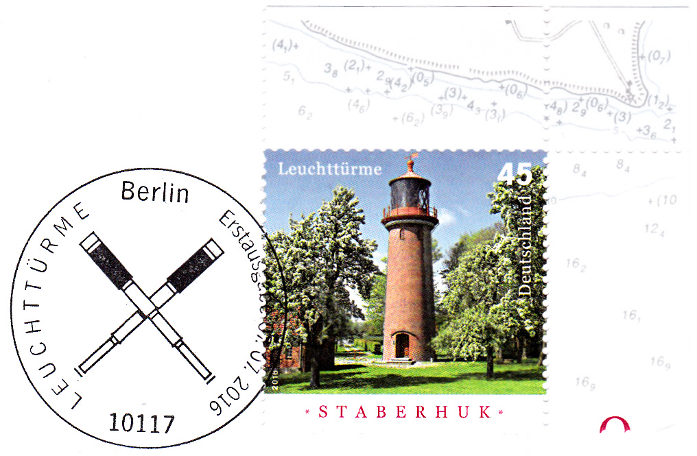 Auf dieser Marke der Deutschen Post (MiNr 2942), die hier zur Frankatur einer Postkarte verwendet wurde, ist der Kleine Leuchtturm Borkum zu sehen.
