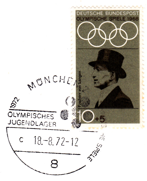 Und hier folgt ein Sonderstempel "Olympisches Jugendlager" vom 18.8.1972 mit Uhrzeit und mit dem Kennbuchstaben "c".