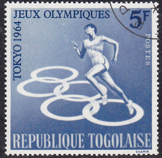 In Togo sind zu den Spielen in Tokio fünf Marken und ein Block erschienen obwohl Togo nicht an den Spielen teilnahm. Hier folgen die fünf Marken.
