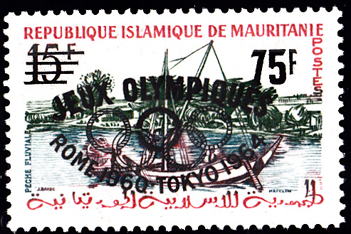 1962 wurde in Mauretanien zwei Marken mit einem Bdr.-Aufdruck "JEUX OLYMPIQUES / olympische Ringe / ROME 1960 - TOKYO 1964" und neuem Wert versehen. Die Marken sind dann aber nicht ausgegeben worden, es sind aber auch Marken auf Brief bekannt. Es gibt beide Marken mit kleinem und mit großem Aufdruck.